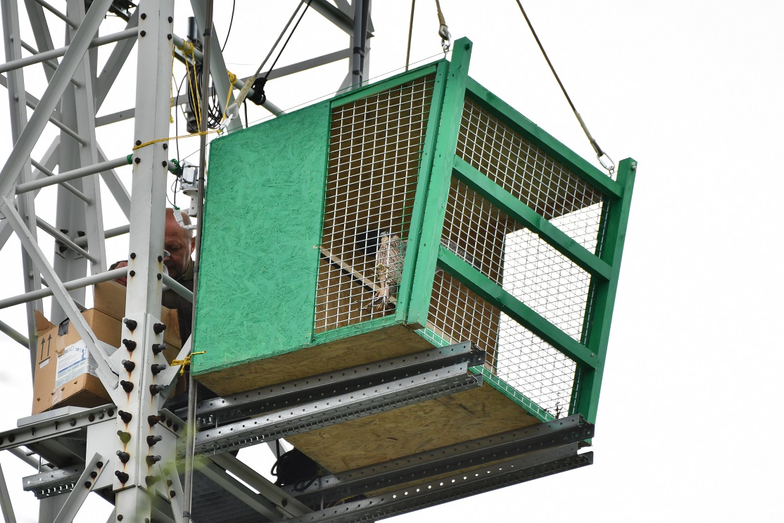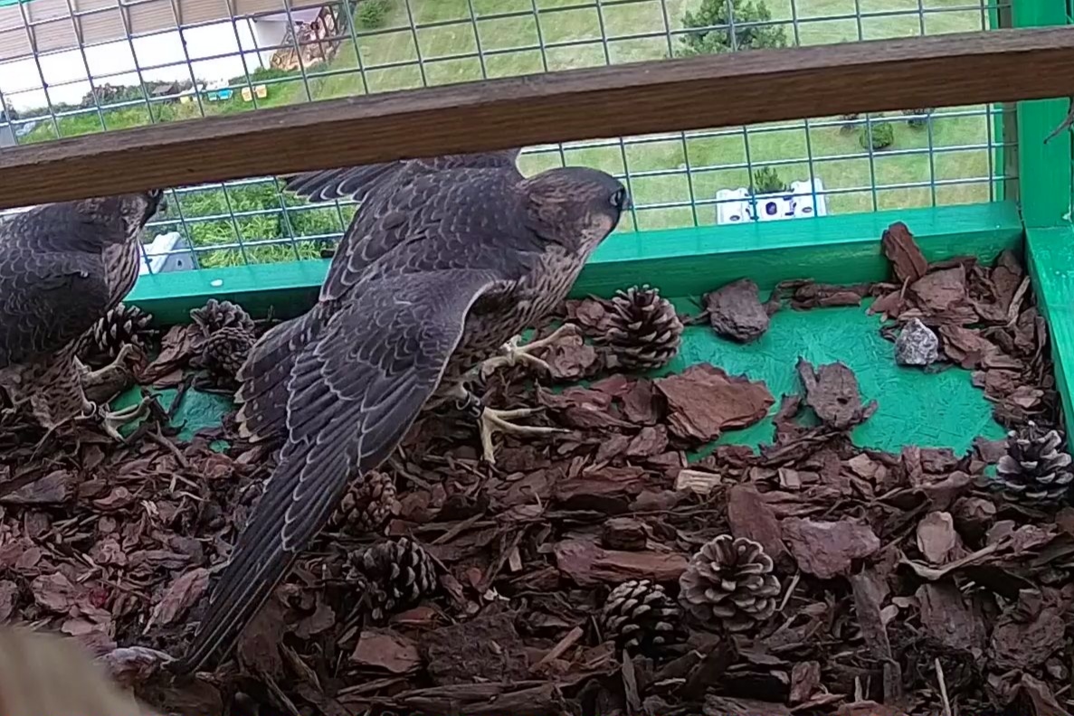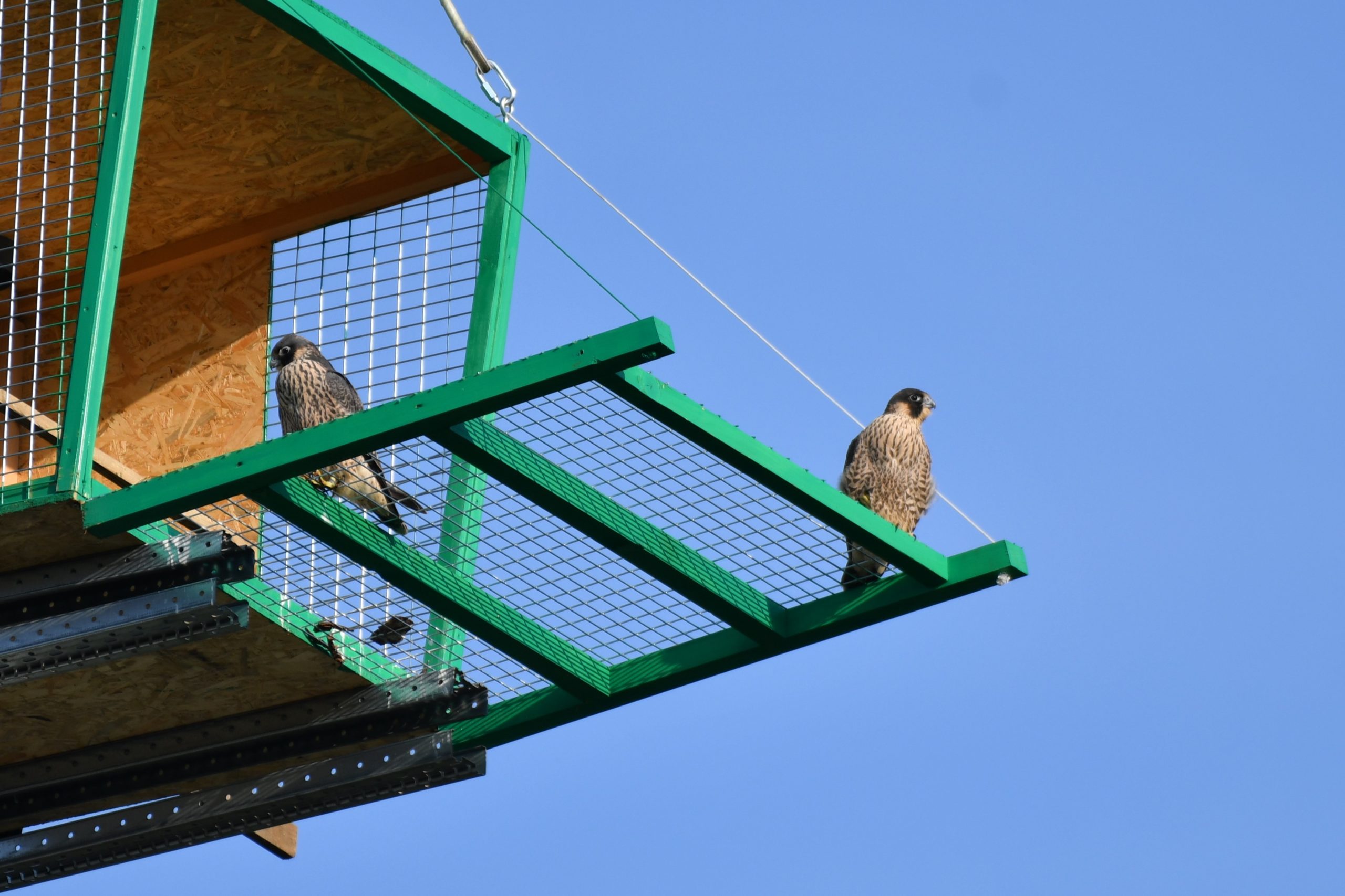 Po 7 dniowym i prawidłowym okresie adaptacji sokołów w klatce gniazdowej została ona otwarta i rozpoczął się swobodny oblot, podczas którego sokoły były codziennie dokarmiane i obserwowane. Wracały do klatki regularnie i bez problemów, a już od drugiego dnia odpoczywały na dachu wieży powyżej klatki, co świadczy o szybkim osiągnięciu sprawności lotnej.