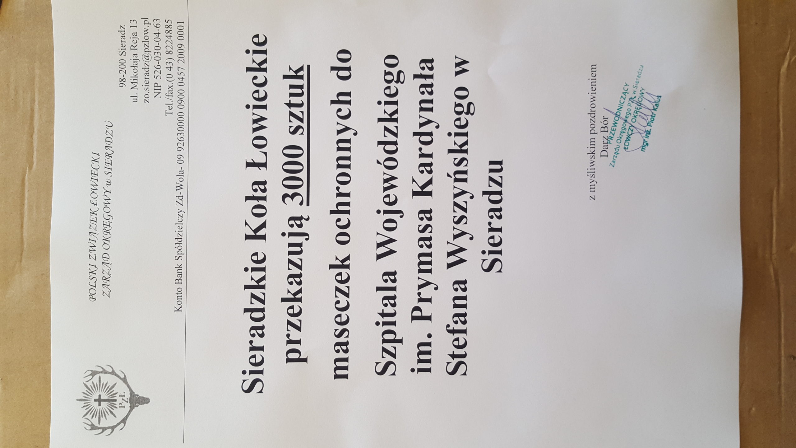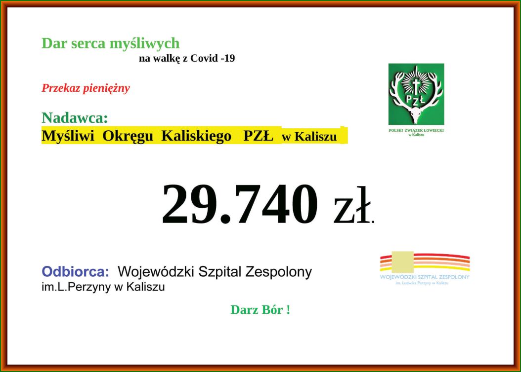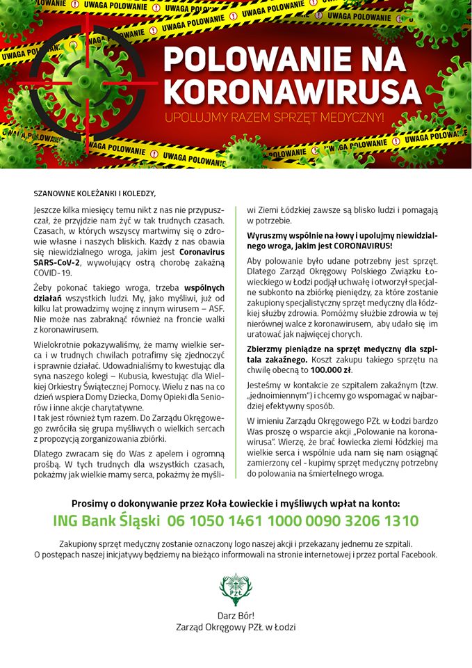 W ramach walki z chorobą COVID-19, Łowczy Krajowy, Paweł Lisiak,  zainicjował akcję oddawania osocza przez ozdrowieńców