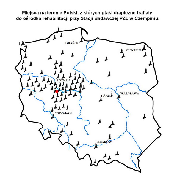 W Stacji znajdują się np. orły przednie czy bieliki utrzymywane przez 20 – 40 lat! Główną przyczyną niesprawności dzikich zwierząt są kontuzje i urazy, okresowe osłabienia młodych osobników, rzadziej choroby czy zatrucia. Najczęściej trafiają tu zwierzęta gatunków pospolitszych jak myszołowy, pustułki, bociany czy jeże. Zdarzają się jednak i bardzo rzadkie, jak orły przednie, rybołowy czy nawet sępy. Wszystkie dostarczane tu zwierzęta znajdują fachową pomoc oraz opiekę, do czego czujemy się zobowiązani i robimy od wielu lat bez modnego obecnie rozgłosu medialnego.