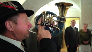Ceremonia rozpoczęła się na wzgórzu z panoramą na przełom Wilii, gdzie uczestników powitała Vida Petiukonienė, dyrektor Regionalnego Parku Werkiai, przybliżając historię tego miejsca. Następnie, w pałacowych wnętrzach, rozbrzmiał sygnał myśliwski w wykonaniu Audriusa Pučinskasa, dyrektora Szkoły Artystycznej w Mariampolu i założyciela pierwszego na Litwie zespołu grającego na rogach myśliwskich.