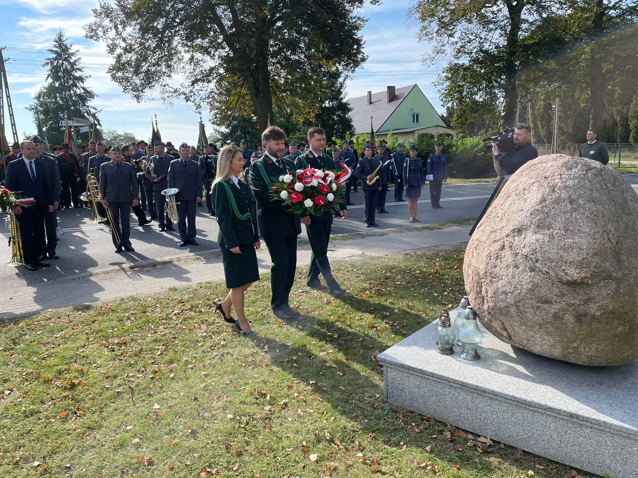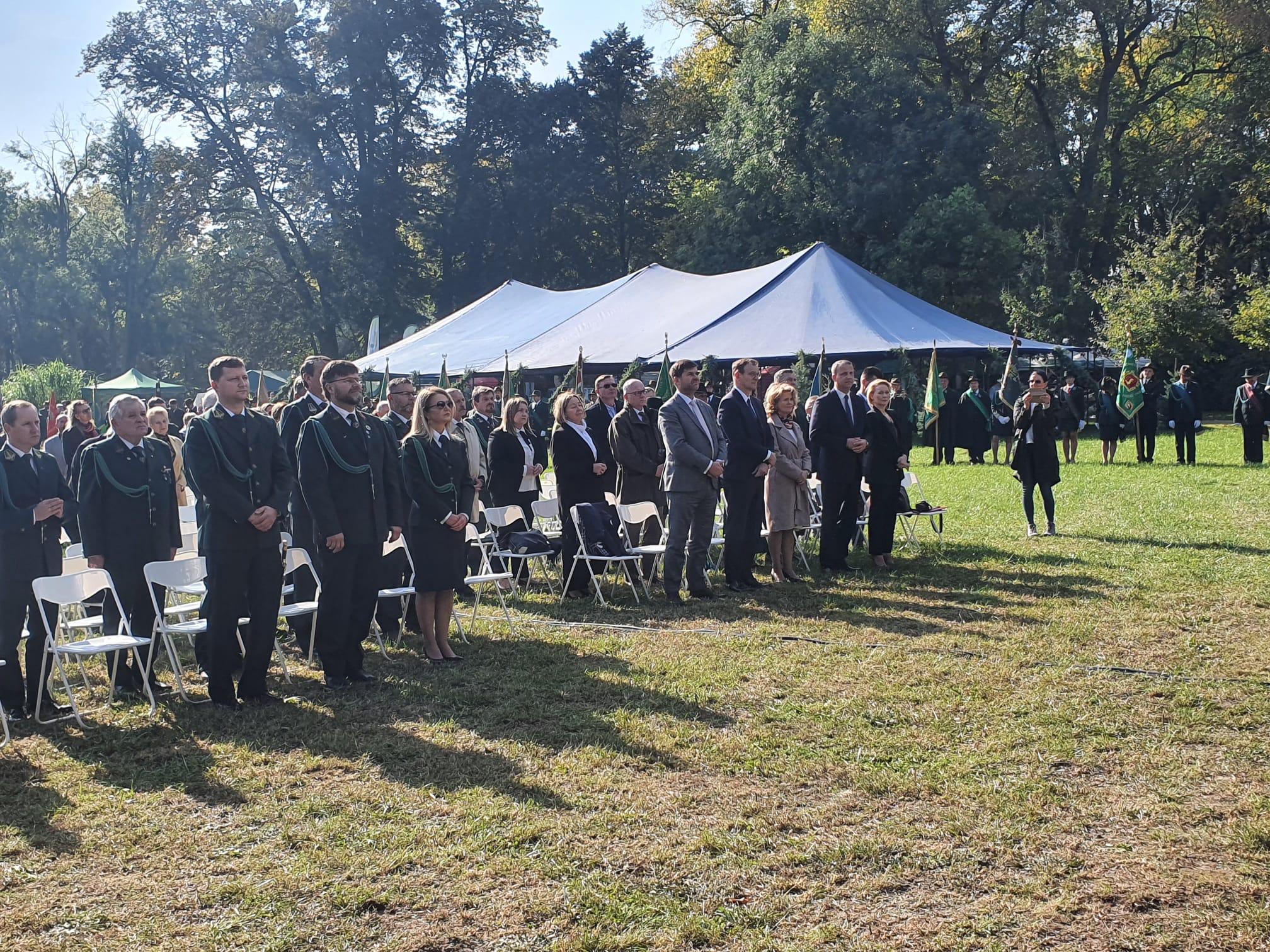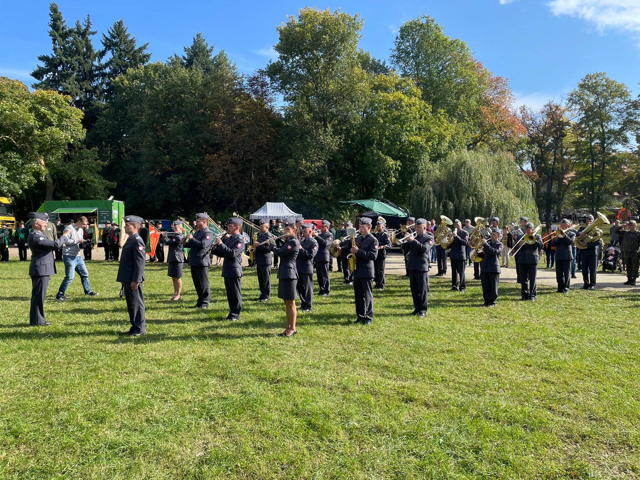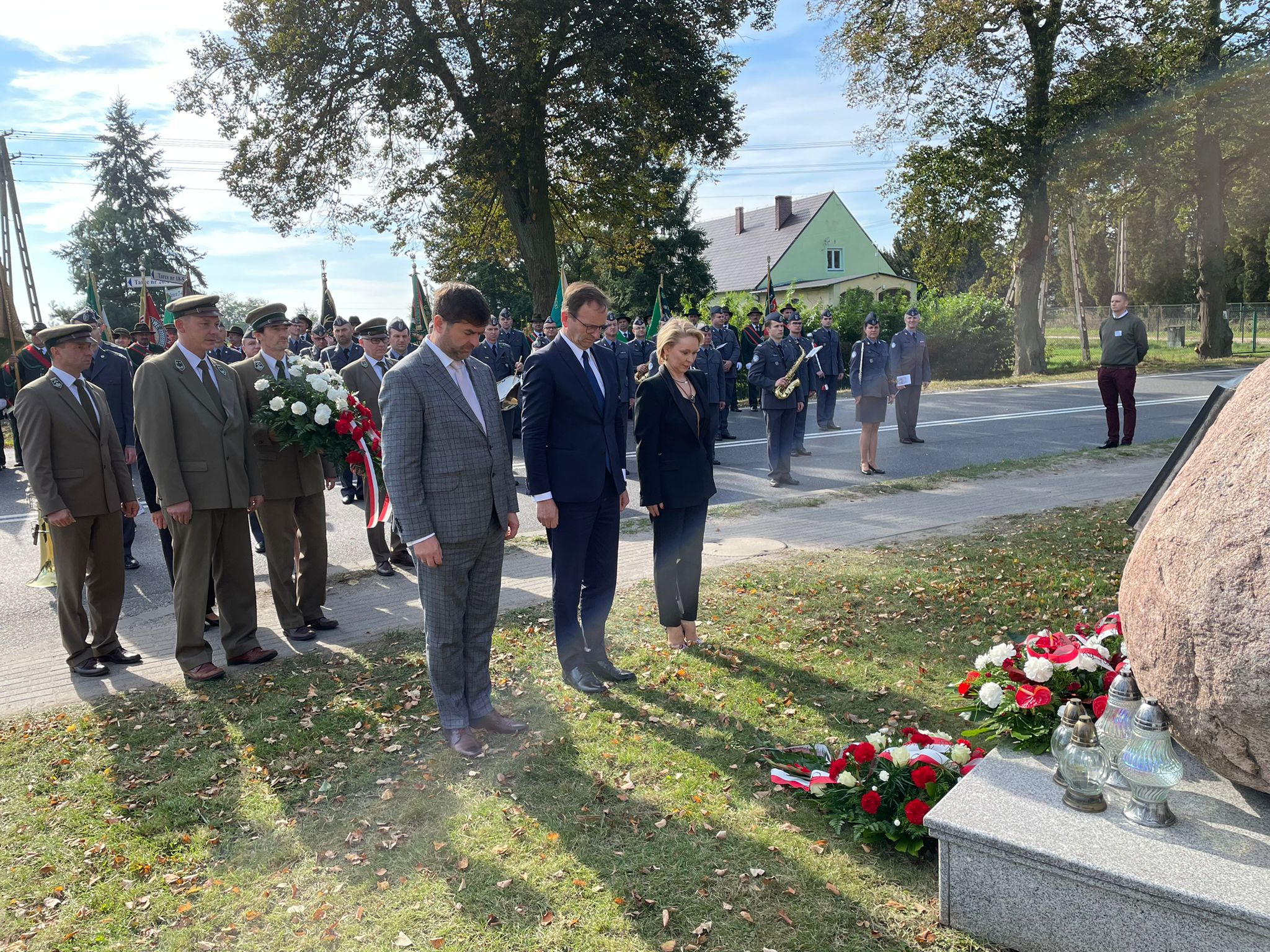 Następnie Orkiestra RK Wojska Polskiego wykonała hymn państwowy. Na zakończenie uczestnicy uczcili minutą ciszy śp. prof. Jana Szyszko. W dalszym ciągu uroczystości poczty sztandarowe przemaszerowały pod pomnik właściciela posiadłości w Tarcach majora Zbigniewa hrabiego Ostroroga-Gorzeńskiego. Paweł Lisiak oraz członkowie Zarządu Głównego PZŁ Ewa Kraska i Damian Przestacki złożyli pod pomnikiem wieniec. Hrabia Ostroróg-Gorzeński był dowódcą jarocińskich powstańców wielkopolskich, myśliwym i organizatorem jednych z największych polowań przed I wojną światową w Wielkim Księstwie Poznańskim. Pasję do polowań odziedziczył po swoim ojcu Stanisławie, budowniczym neorenesansowego pałacu w Tarcach, gdzie odbywa się tegoroczny Ogólnopolski Hubertus. Po zakończeniu oficjalnych uroczystościach rozpoczął się festiwal.