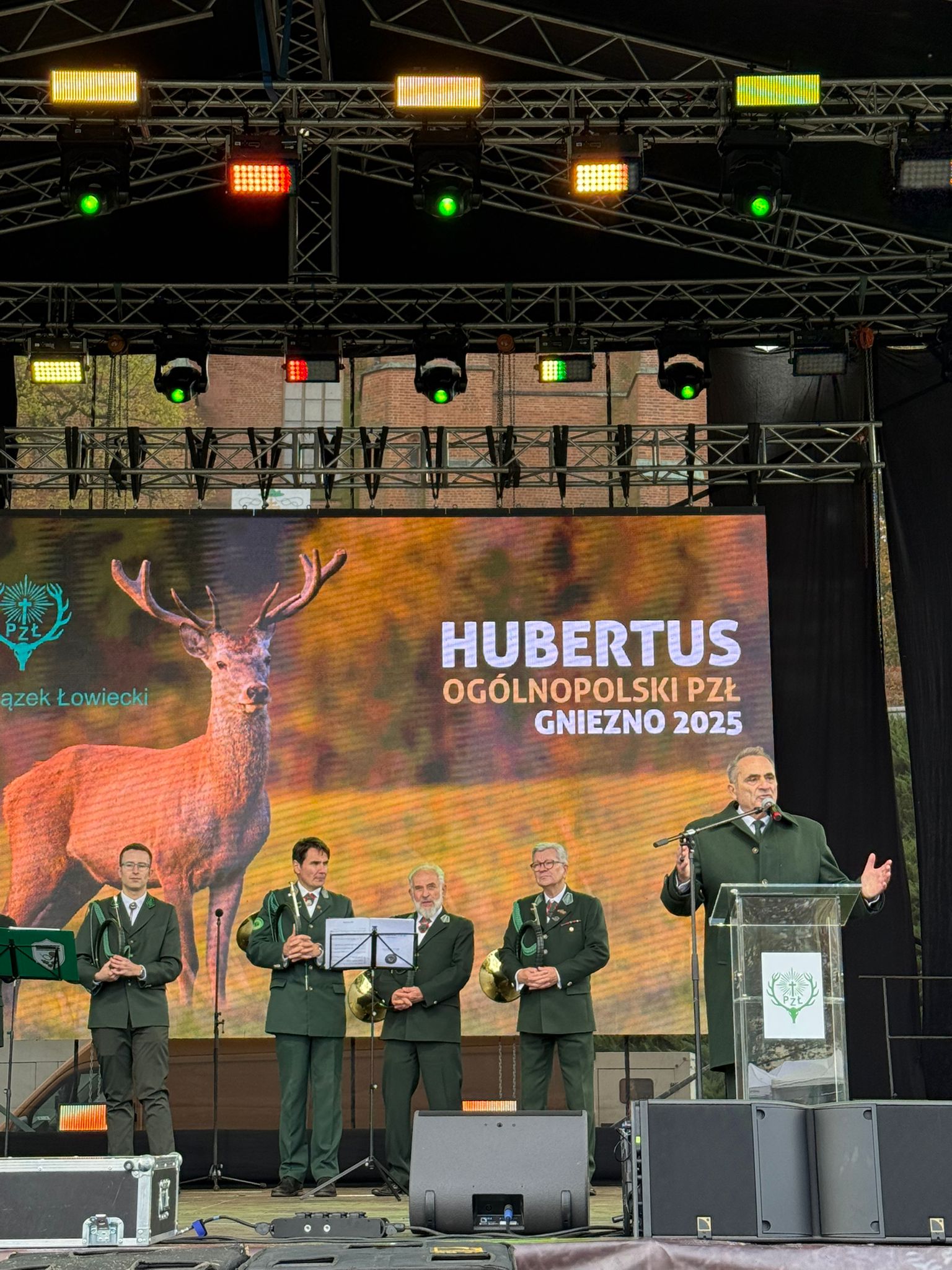 – Nieprzypadkowo spotykamy się właśnie tu, w Gnieźnie, u stóp tej monumentalnej katedry, w sercu polskiego chrześcijaństwa i polskiej państwowości, by wspólnie świętować ogólnopolskiego Hubertusa, dzień, w którym tradycja, przyroda i wspólnota ludzi lasu, pól, wód i łąk łączy się w jedną całość – mówił Łowczy Krajowy Eugeniusz Grzeszczak. – To szczególne miejsce, przypominające nam o naszych korzeniach, wartościach i odpowiedzialności, także tej, którą niesiemy my jako myśliwi.