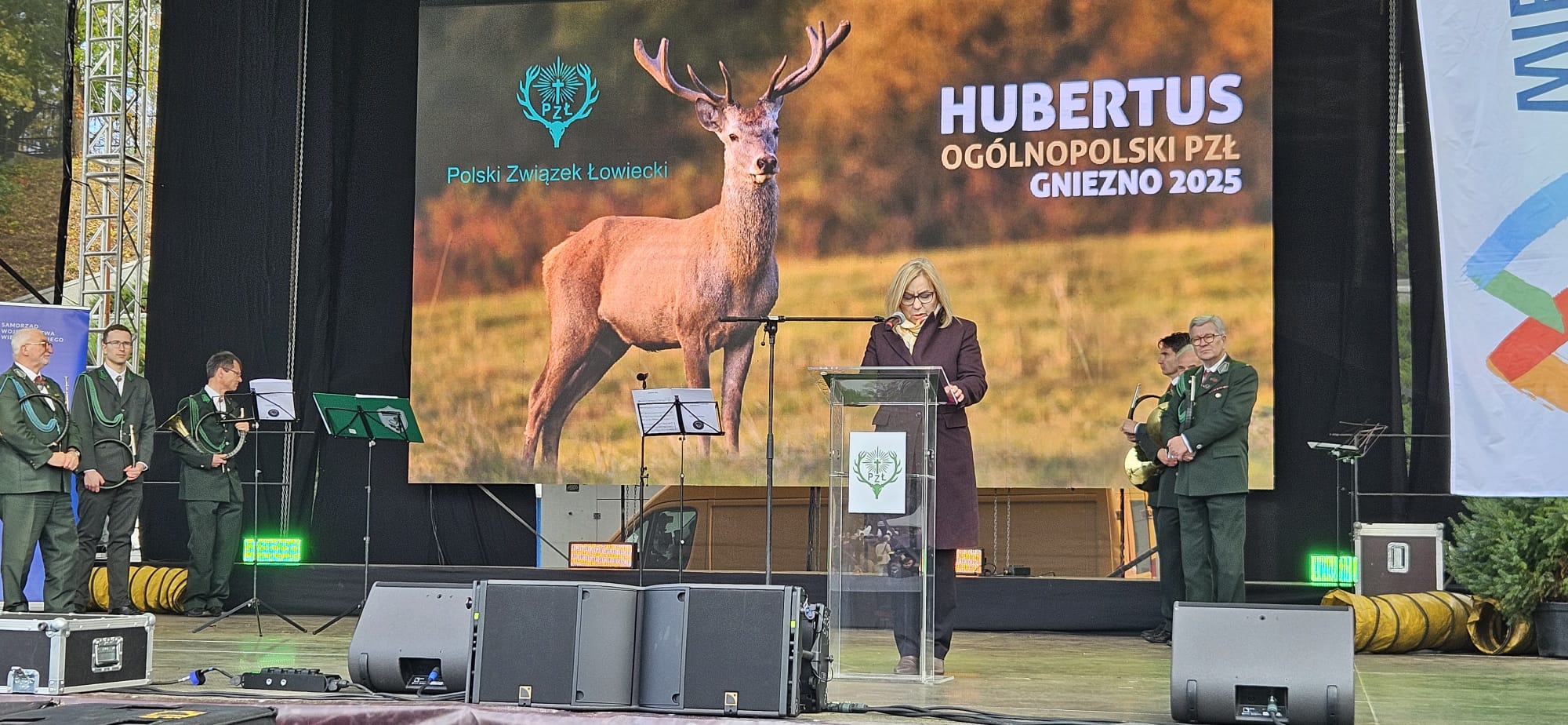 – Tak samo jak święty Hubert zmieniamy swoje podejście do przyrody – mówiła. – Nie czerpiemy już z niej pełnymi garściami, dążymy do równowagi i ochrony. Bojaźliwy respekt zyskuje nowy wymiar – realnej troski o środowisko. Polski Związek Łowiecki ma w tym wymiarze do odegrania swoją niezwykle ważną rolę.