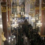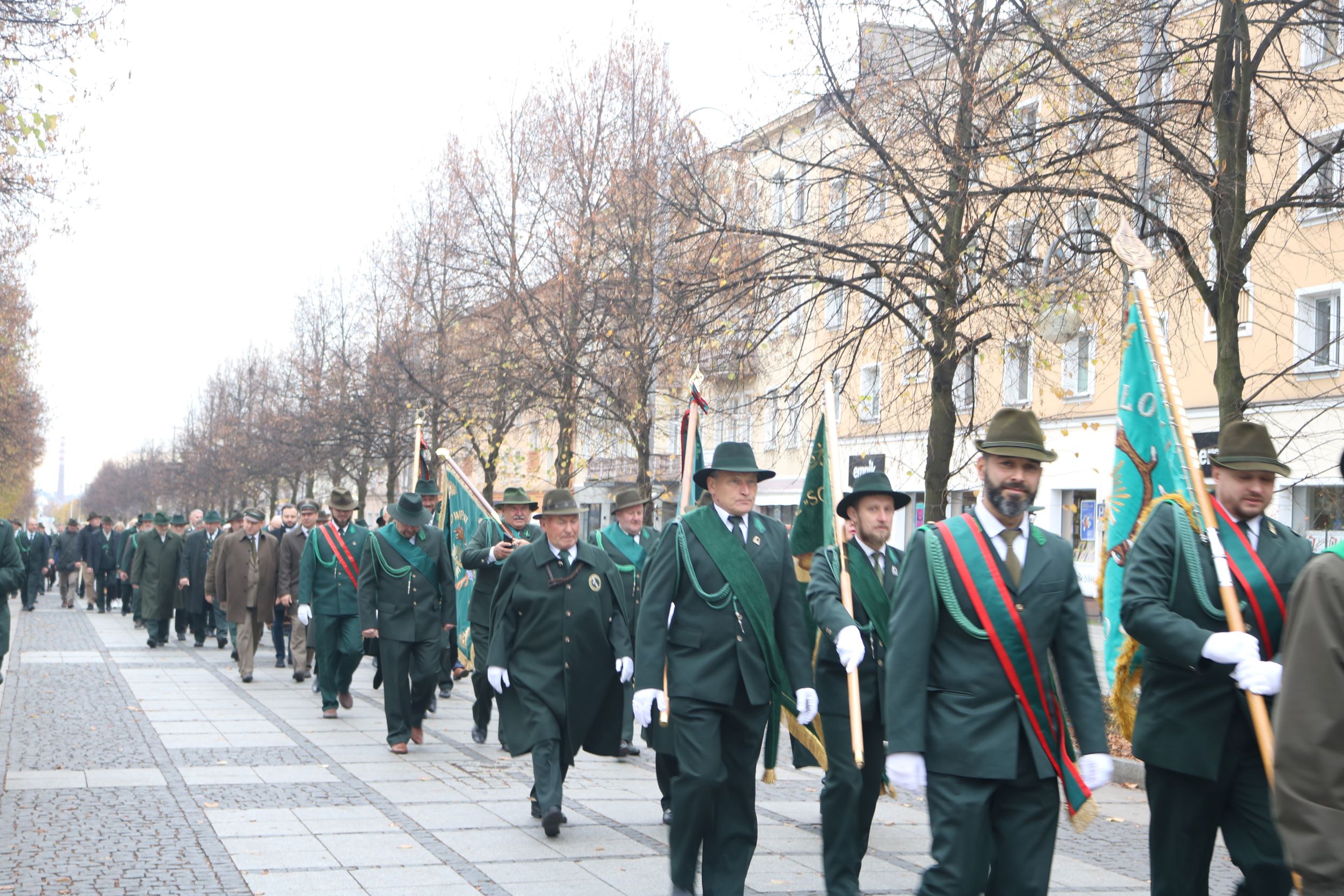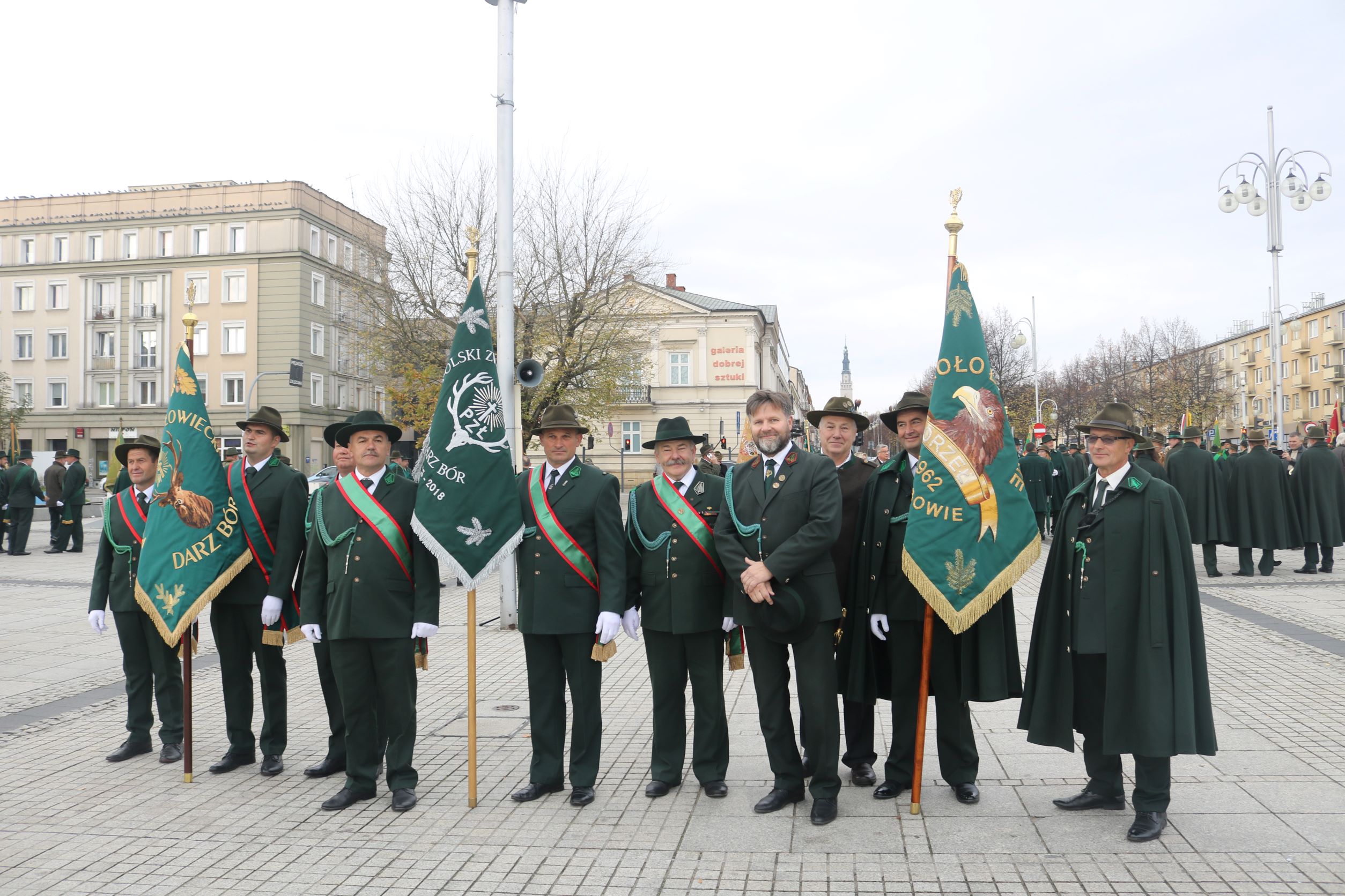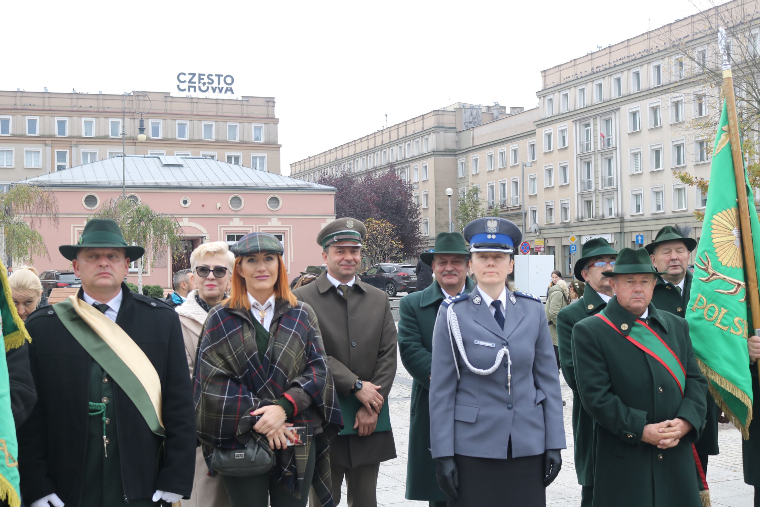 Już od wczesnych godzinnych rannych poczty sztandarowe zbierały się na Placu Biegańskiego, aby o godzinie 10. wyruszyć w asyście Myśliwskiej Orkiestry Dętej Gminy Komprachcice wzdłuż Alei Najświętszej Marii Panny do bazyliki, która po raz  kolejny zapełniła się ponad 100 sztandarami zarządów okręgowych naszego Zrzeszenia, kół łowieckich z całej Polski i klubów kolekcjonera. Tuż przed wejściem do bazyliki, poczty sztandarowe zatrzymały się, orkiestra zagrała sygnał myśliwski „Zbiórka”, po czym zespół „Złoty Róg” z ZO Bydgoszcz odegrał sygnał „Darz Bór”, a chór myśliwski „Knieja” z ZO Zamość zaśpiewał na wejście pieśń do naszego patrona.