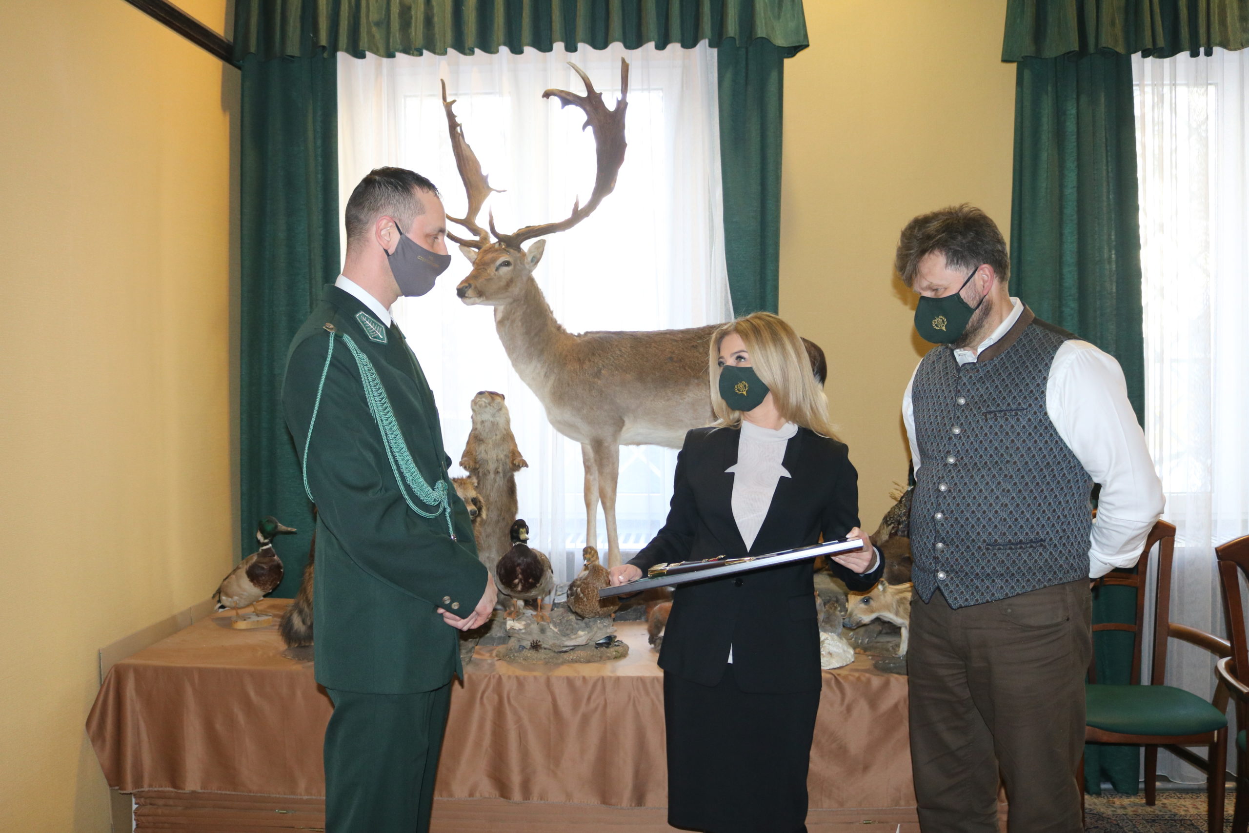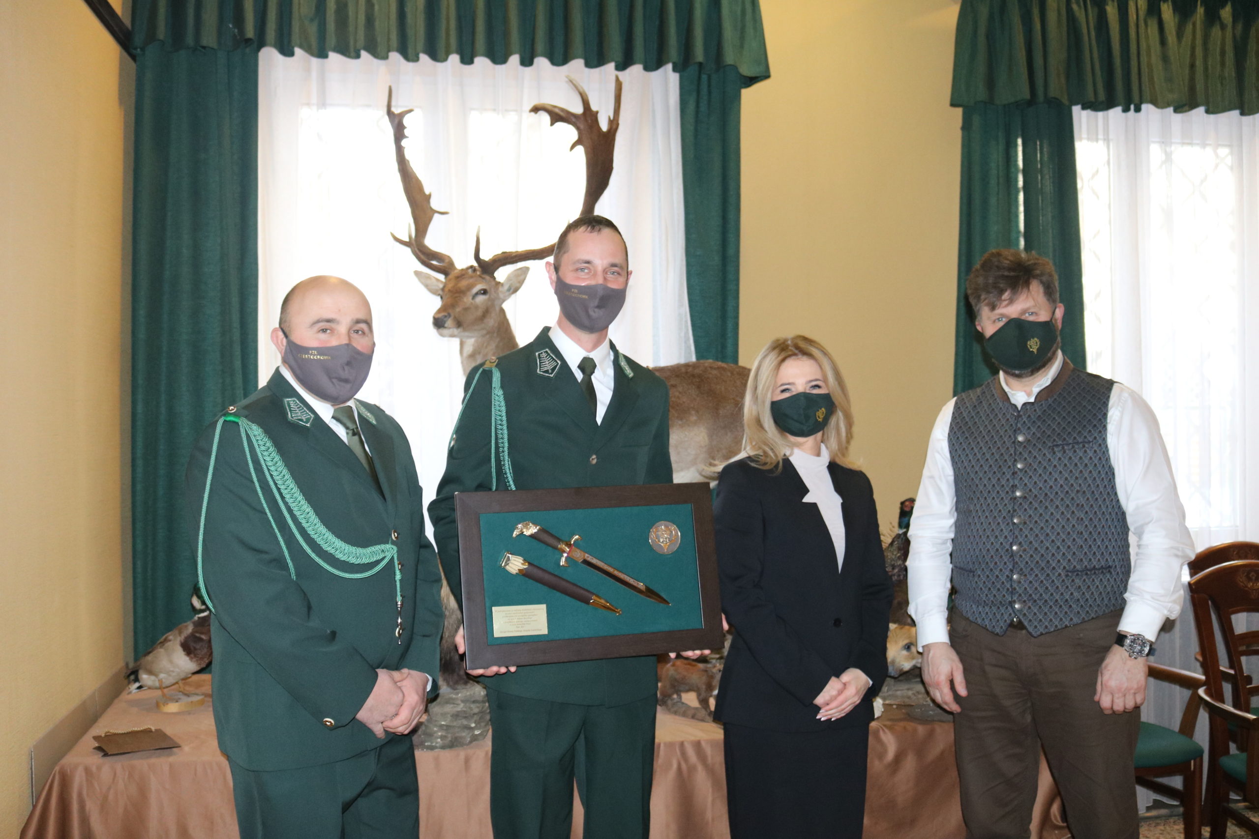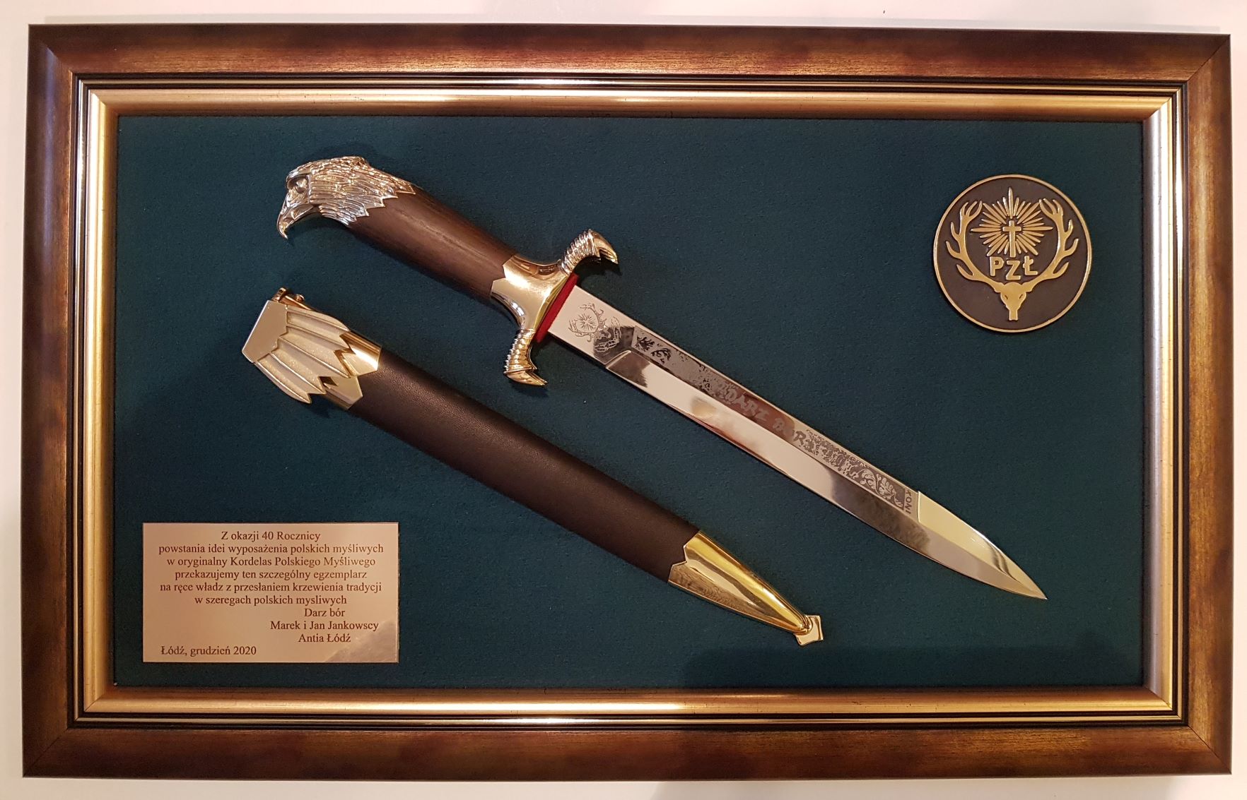 Kolega Adam Benkowski odebrał z rąk przedstawicieli Zarządu Głównego, Ewy Kraski oraz Pawła Lisiaka, Kordelas Polskiego Myśliwego, wyprodukowany przez firmę Antia Łódź. Jest to kordelas wyjątkowy, bo wylicytowany w świątecznej akcji charytatywnej dla Mikołaja, syna myśliwego.