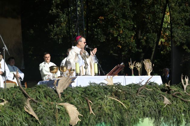 Centralne obchody rozpoczęła msza święta Hubertowska w intencji myśliwych, leśników i jeźdźców, której przewodniczył bp Damian Bryl, a koncelebrowało kilkudziesięciu kapelanów okręgowych PZŁ z całego kraju. Na ołtarzu znalazły się relikwie św. Huberta. Homilię wygłosił kapelan krajowy Polskiego Związku Łowieckiego ks. Sylwester Dziedzic, który mówił, że w dzisiejszym świecie potrzeba odwagi, czasem mocniejszego słowa, aby nasze wartości pokazywać.