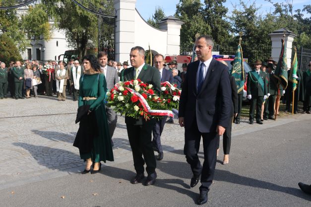 Po oficjalnych przemówieniach sztandary Polskiego Związku Łowieckiego przemaszerowały pod tablicę upamiętniającą mjr. Zbigniewa hr. Ostroroga-Gorzeńskiego, właściciela posiadłości w Tarcach, Wielkopolanina, dowódcę wojsk powstańczych na jarocińskiej ziemi. Tam oddano mu cześć i orszak dalej przemaszerował pod scenę główną.