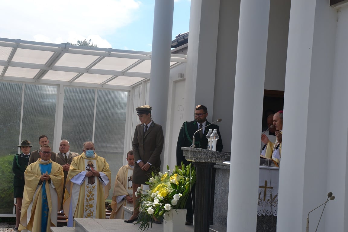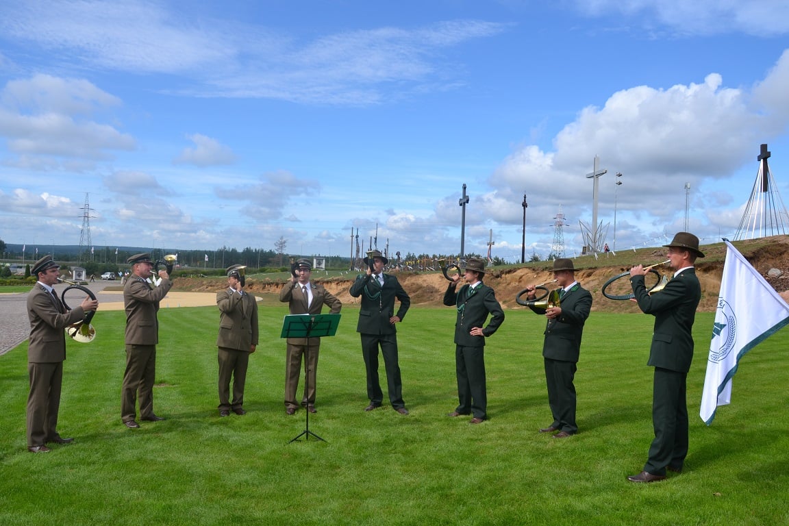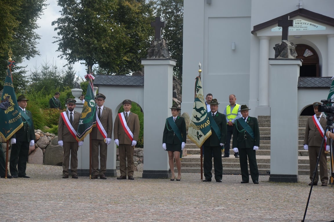 Następnie w asyście Pocztów Sztandarowych i przy akompaniamencie zespołu sygnalistów myśliwskich z Nadleśnictwa Ełk oraz zespołu sygnalistów myśliwskich Ochota przy Zarządzie Okręgowym PZŁ w Białymstoku, wszyscy zgromadzeni udali się na uroczystą Mszę św. w intencji leśników oraz myśliwych, poległych i pomordowanych przez okupantów niemieckich i sowieckich oraz z okazji 100 rocznicy urodzin św. Jana Pawła II, której przewodniczył Jego Ekscelencja Biskup Henryk Ciereszko. Po mszy, myśliwi zaprosili uczestników pielgrzymki na myśliwski posiłek.