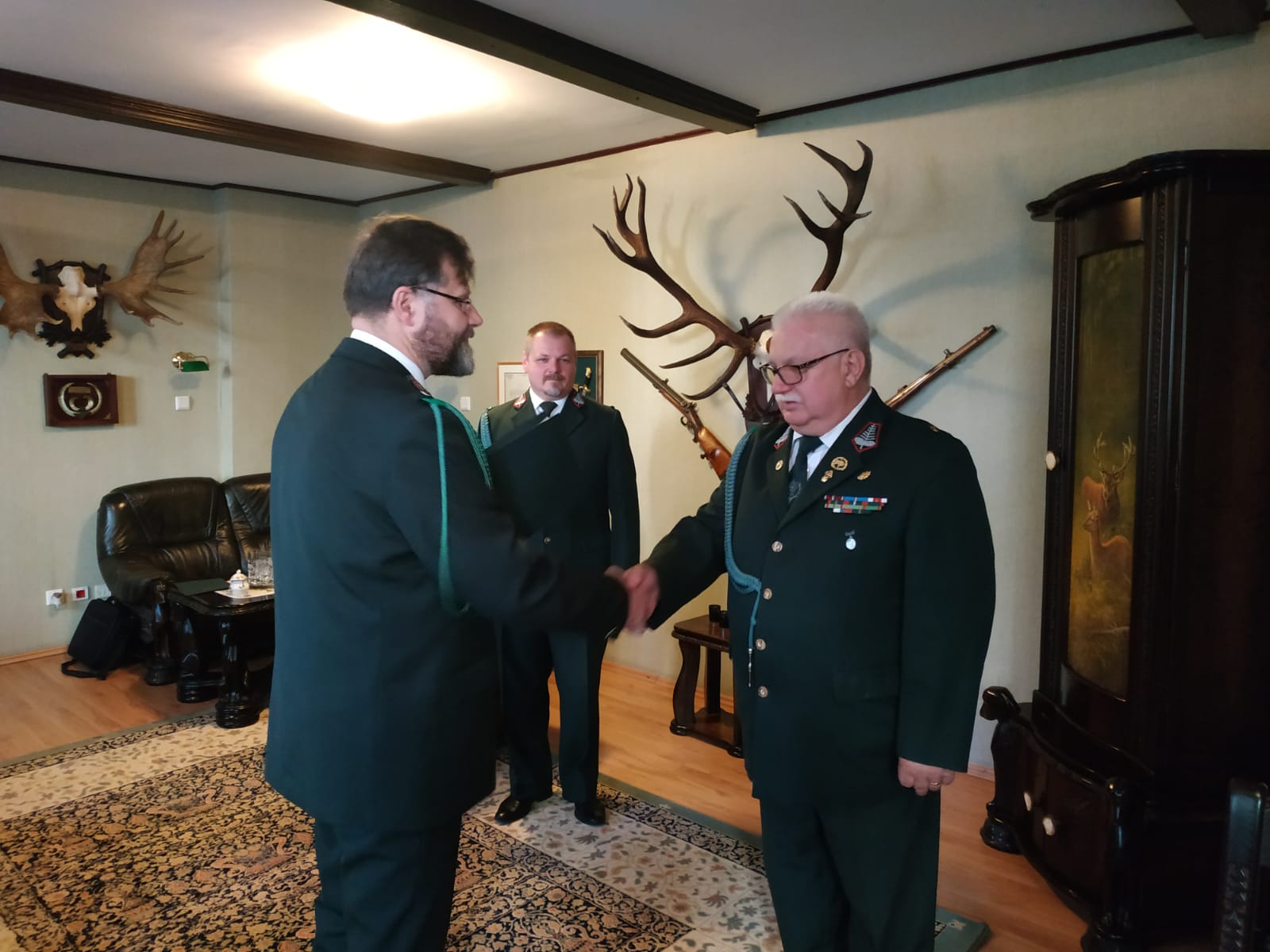Dnia 8 września nominację na łowczego okręgowego w Pile przyjął kolega Michał Kolasiński. Zastąpi odchodzącego na zasłużoną emeryturę kolegę Sławomira Jaroszewicza, który kierował okręgiem pilskim 17 lat. Kolega Jaroszewicz jest myśliwym od 1983 r, członkiem koła łowieckiego nr 22 „Knieja” Trzcianka. Posiada uprawnienia selekcjonera, lektora – eksperta, instruktora i sędziego strzelectwa. Za zasługi dla polskiego łowiectwa został odznaczony Medalem św. Huberta oraz najwyższym łowieckim odznaczeniem – Złomem. Dziękujemy koledze Sławomirowi za zaangażowanie i lata pracy na rzecz lokalnej braci myśliwskiej.
