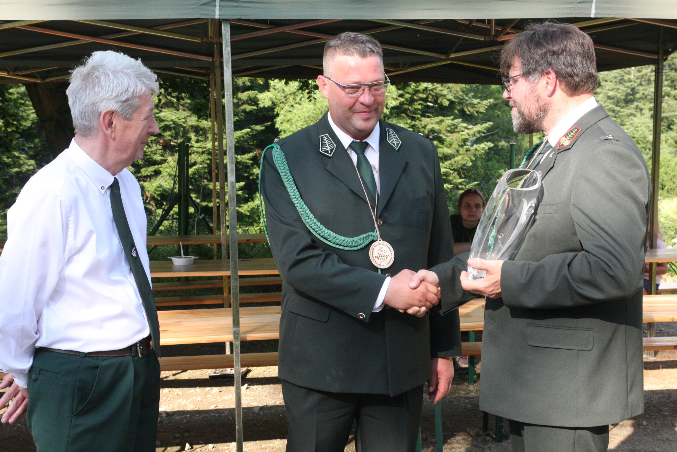 Podczas uroczystości Łowczy Krajowy uhonorował specjalnym pucharem Przewodniczącego Komisji Kynologicznej Karpacka Złaja – Arkadiusza Zulewskiego.