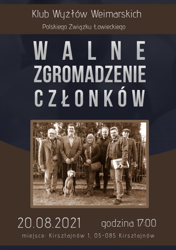 Zarząd Klubu Wyżłów Weimarskich Polskiego Związku Łowieckiego zaprasza wszystkich członków Klubu na Walne Zgromadzenie, które odbędzie się 20 sierpnia w Kirsztajnowie.
