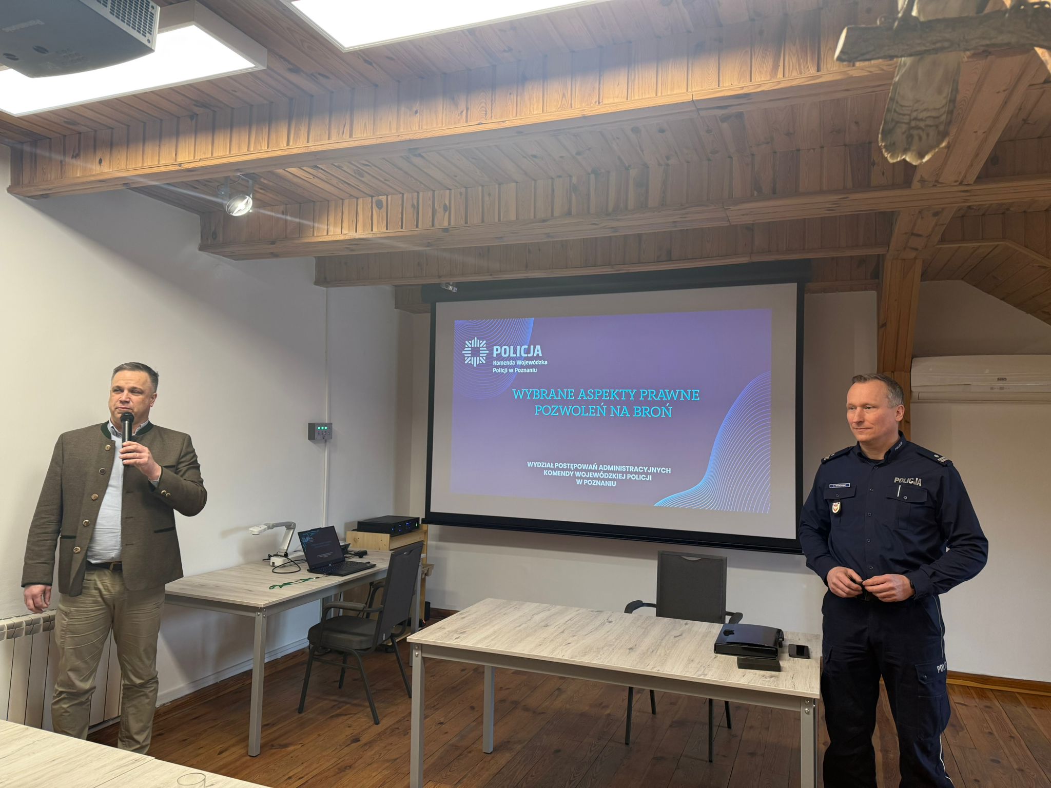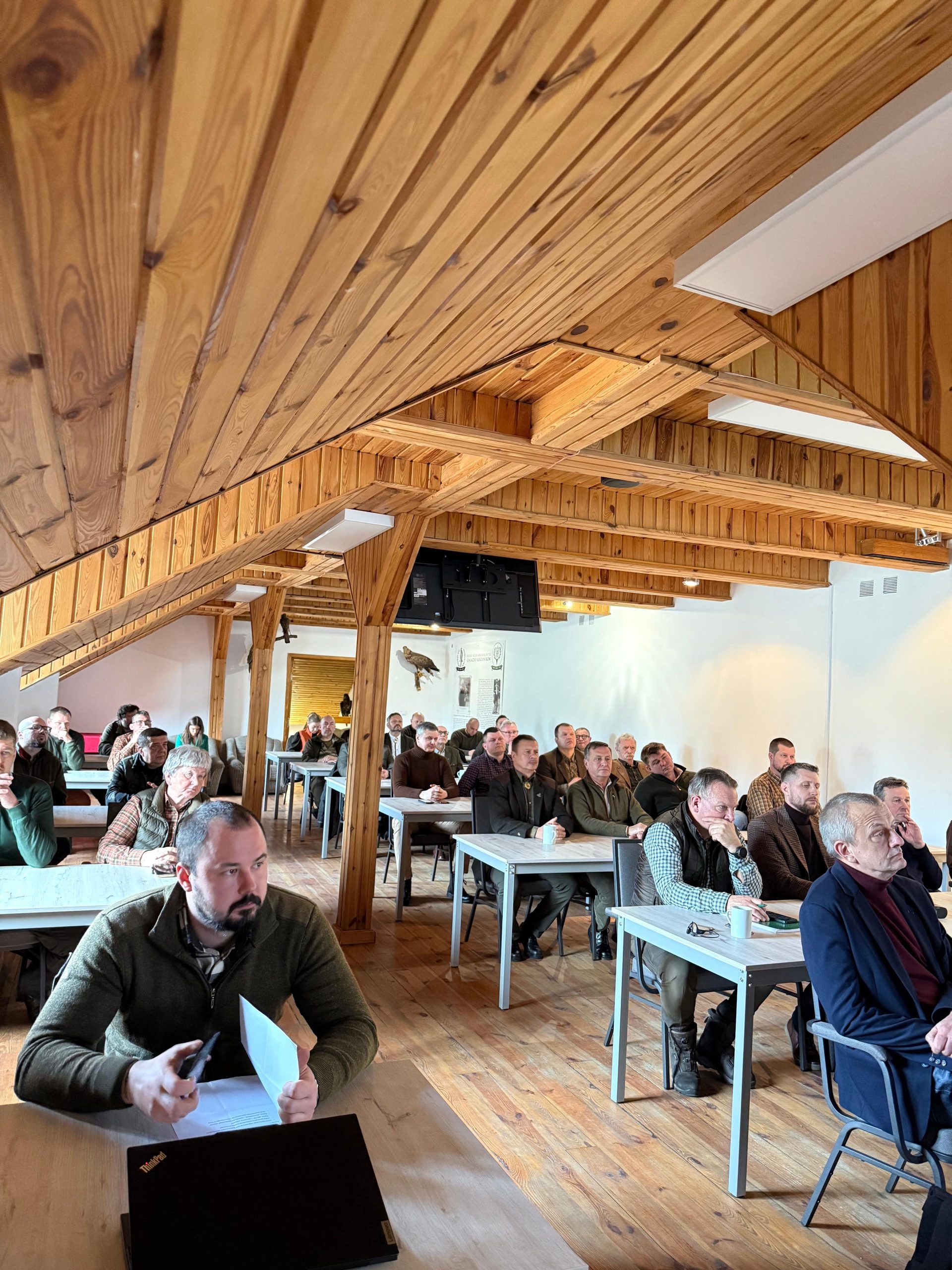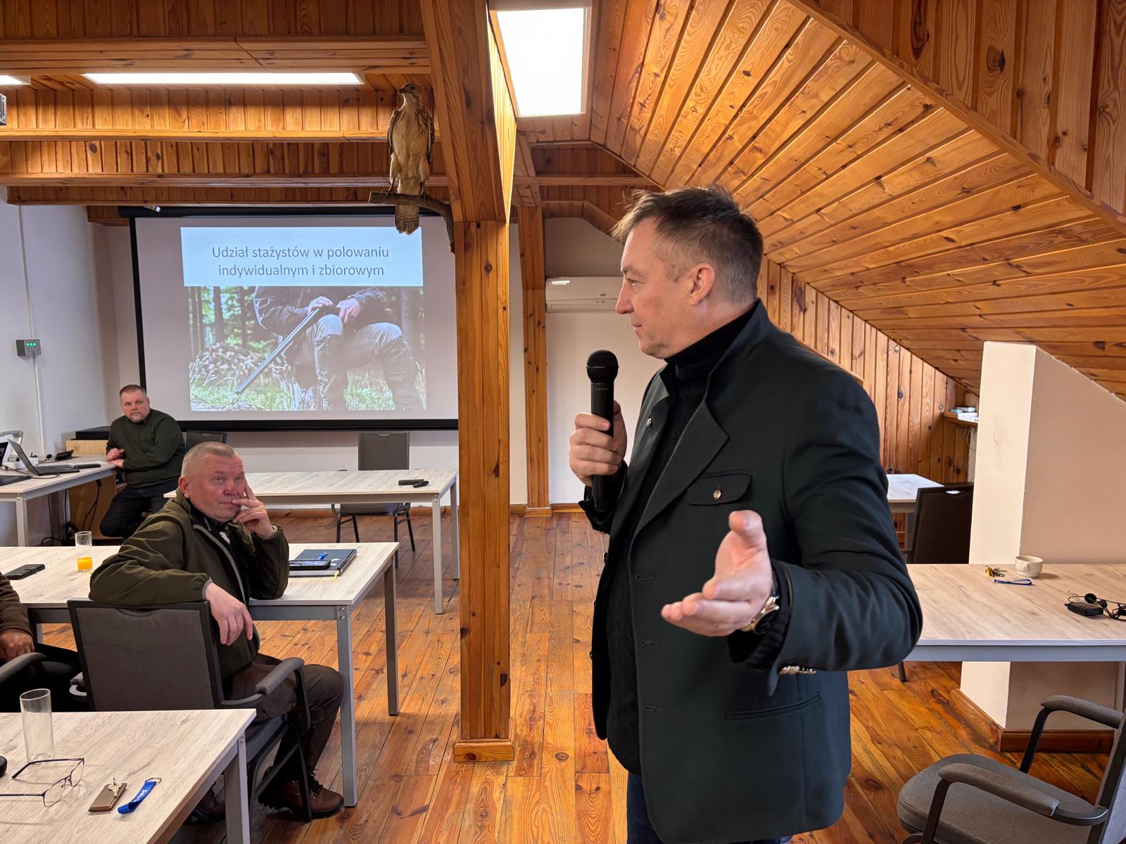 Drugi dzień warsztatów poświęcono standardom szkolenia i praktyce organizacji bezpiecznego polowania. Podinsp. K. Witkowski prowadził prelekcje dotyczące budowania świadomości prawnych i faktycznych uwarunkowań związanych z posługiwaniem się bronią palną, a także działań prewencyjnych ograniczających ryzyko naruszeń prawa. Ponadto omawiano zasady prowadzenia zajęć na strzelnicy, udział stażystów w polowaniach, strefy bezpiecznego strzału, komunikację podczas polowań zbiorowych oraz znaczenie przestrzegania procedur dla wizerunku PZŁ i środowiska myśliwych.