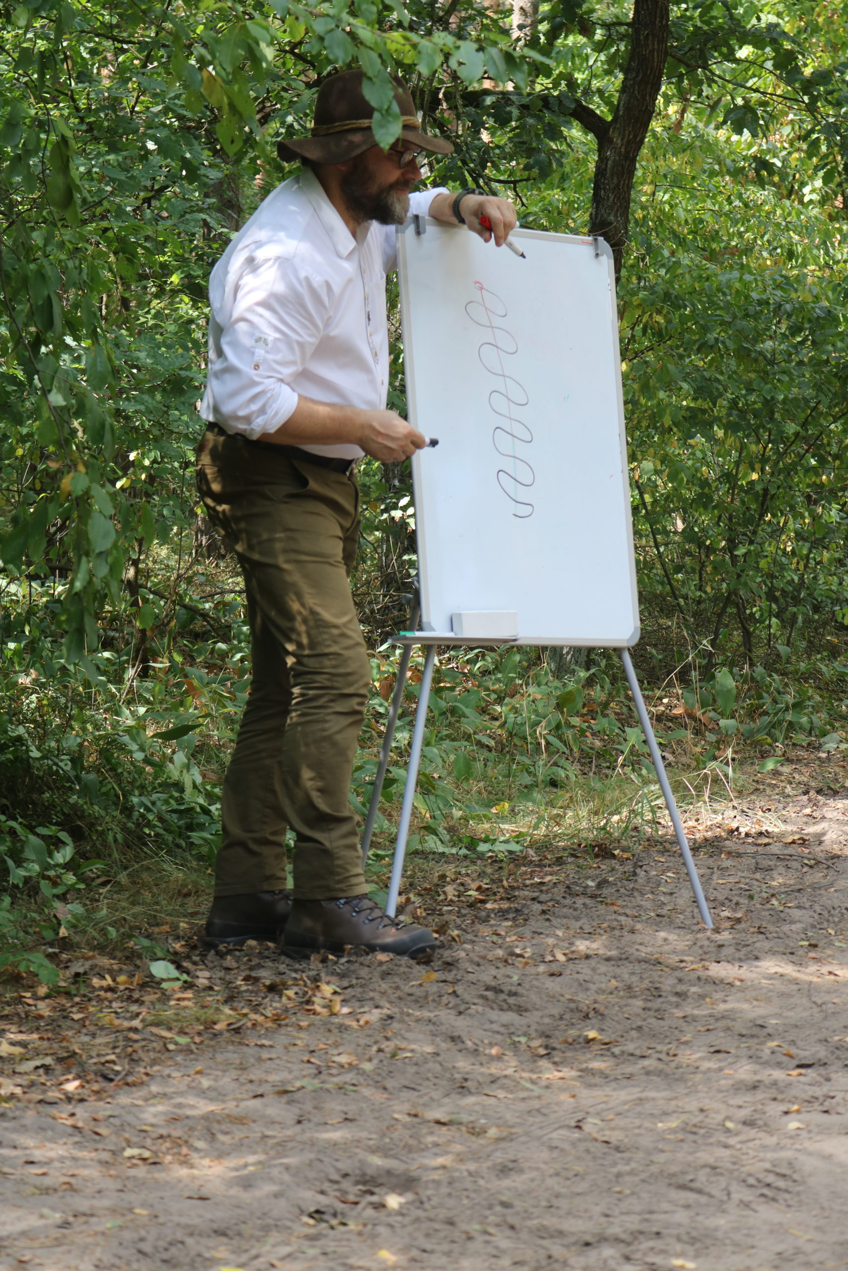 W trakcie zajęć terenowych uczestnicy warsztatów podzieleni zostali na kilkuosobowe grupy, które pracowały pod opieką doświadczonych kynologów – praktyków a całość nadzorował Łowczy Krajowy. Wykład teoretyczny dotyczący przygotowania psa do pracy na tropie jak i prowadzenia psa podczas poszukiwania postrzałków poprowadził również Łowczy Krajowy.
