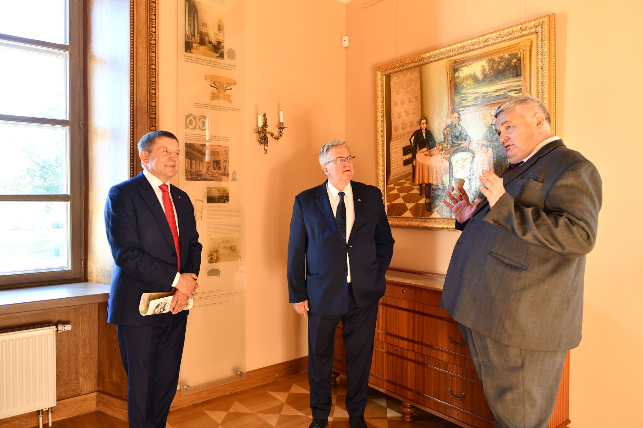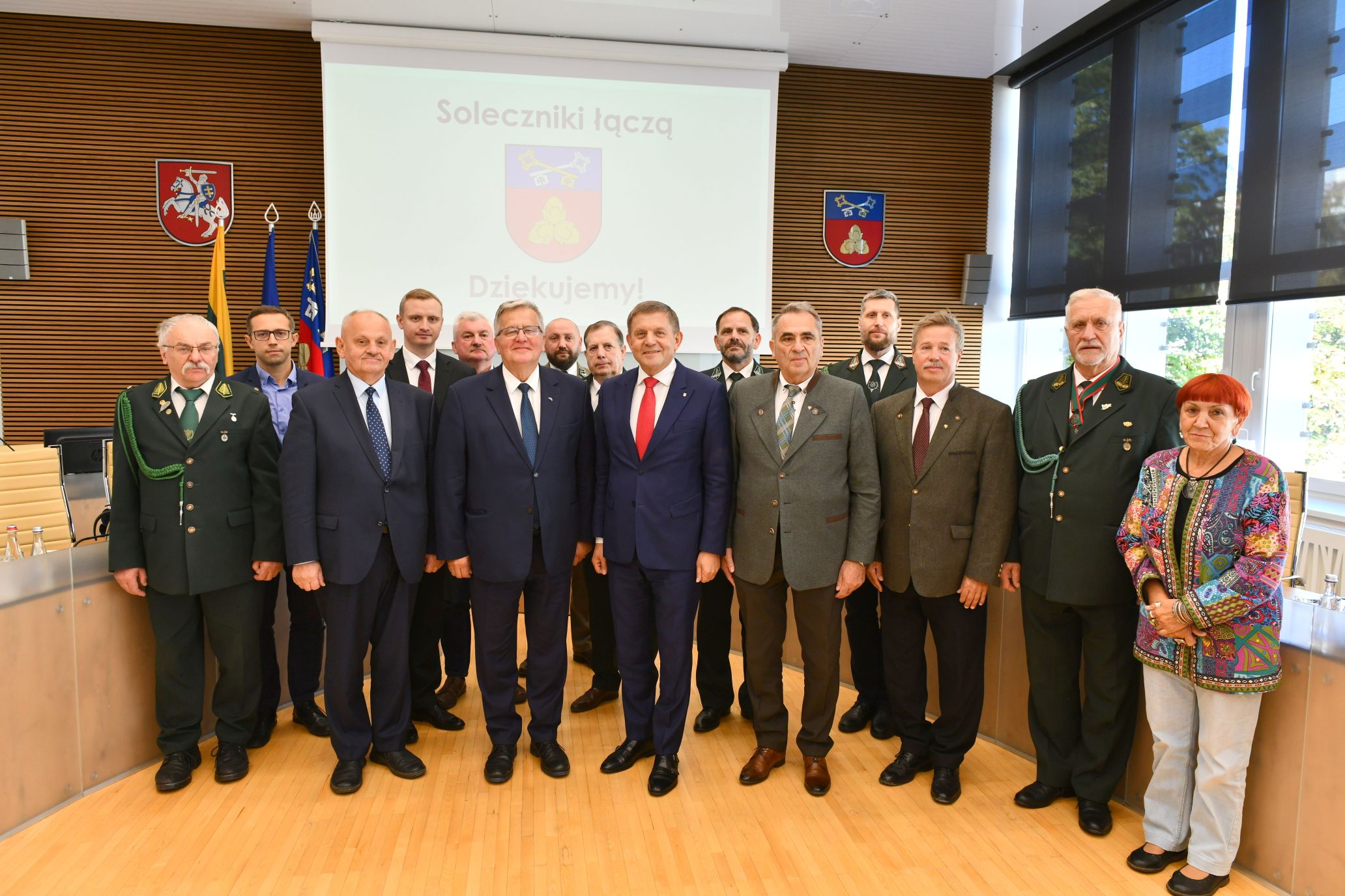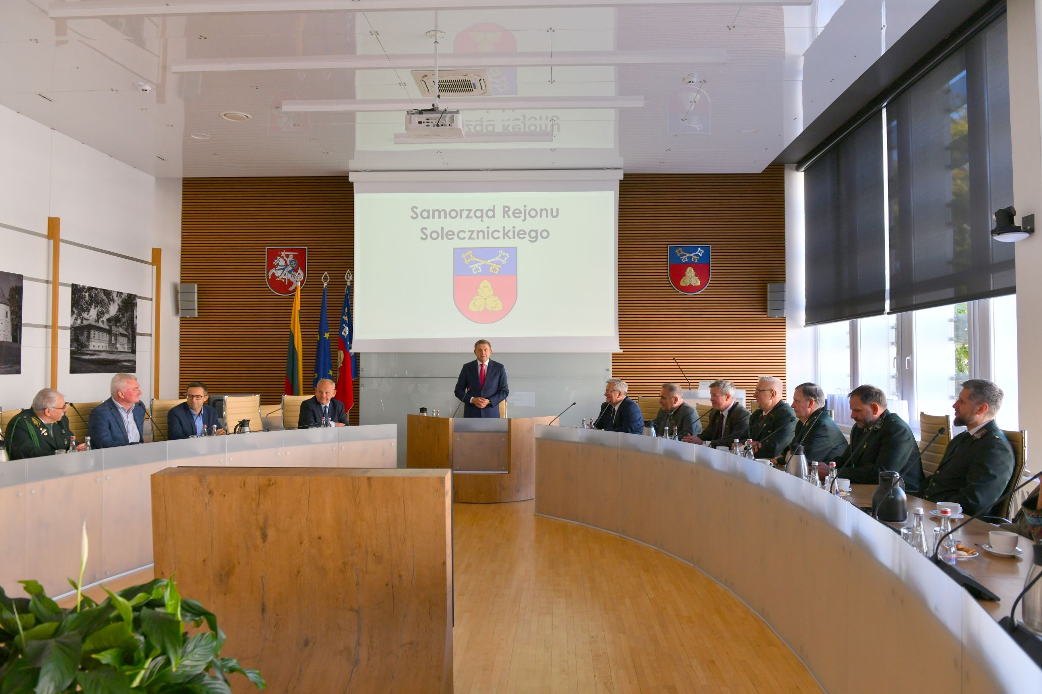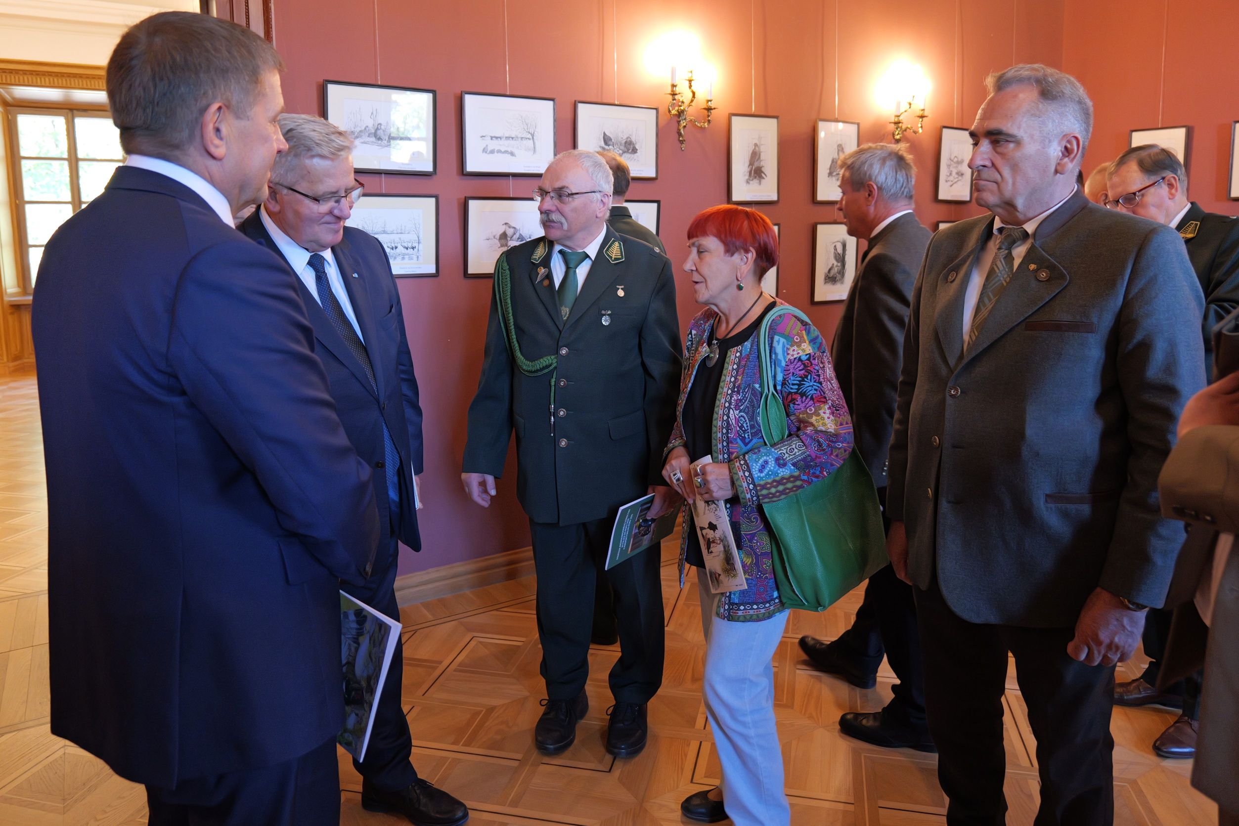 Otwarcie wystawy poprzedziło spotkanie z władzami rejonu, przygotowane przez Samorząd Rejonu Solecznickiego, w siedzibie merostwa, w Solecznikach. Spotkanie prowadził Mer Samorządu Rejonu Solecznickiego, Zdzisław Palewicz, na którym zaprezentowano historię regionu. W spotkaniu udział wzięli ze strony polskiej: Bronisław Komorowski Prezydent RP w latach 2010 – 2015, który przyczynił się do odbudowy Pałacu Balińskich, Łowczy Krajowy Eugeniusz Grzeszczak, członek NRŁ Stefan Feder, Członek Honorowy PZŁ Jerzy Pawliszak, przedstawiciele ZO PZŁ w Gorzowie Wlkp., prezes KKiKŁ PZŁ oraz rodzina Jarosława Janickiego. Na zaproszenie Mera uczestnicy odwiedzili Gimnazjum im. Jędrzeja Śniadeckiego w Solecznikach, gdzie spotkano się z młodzieżą i dyrekcją szkoły.