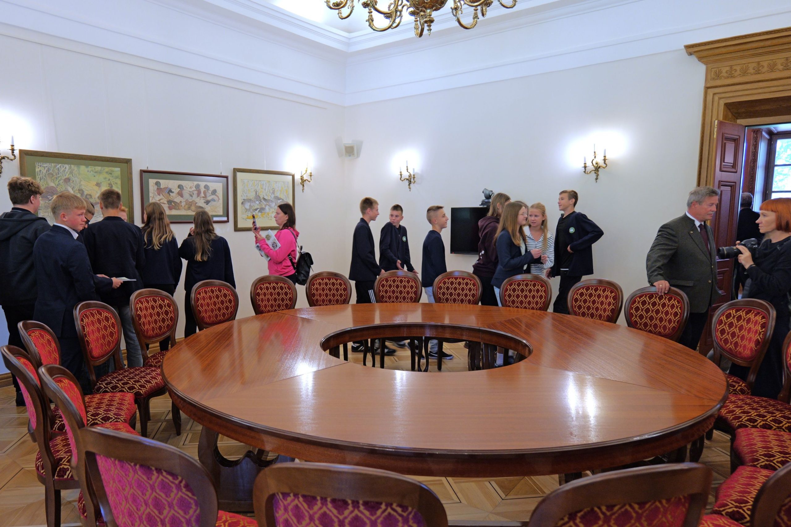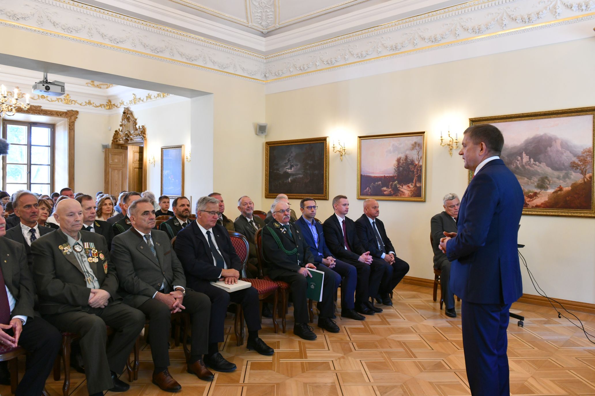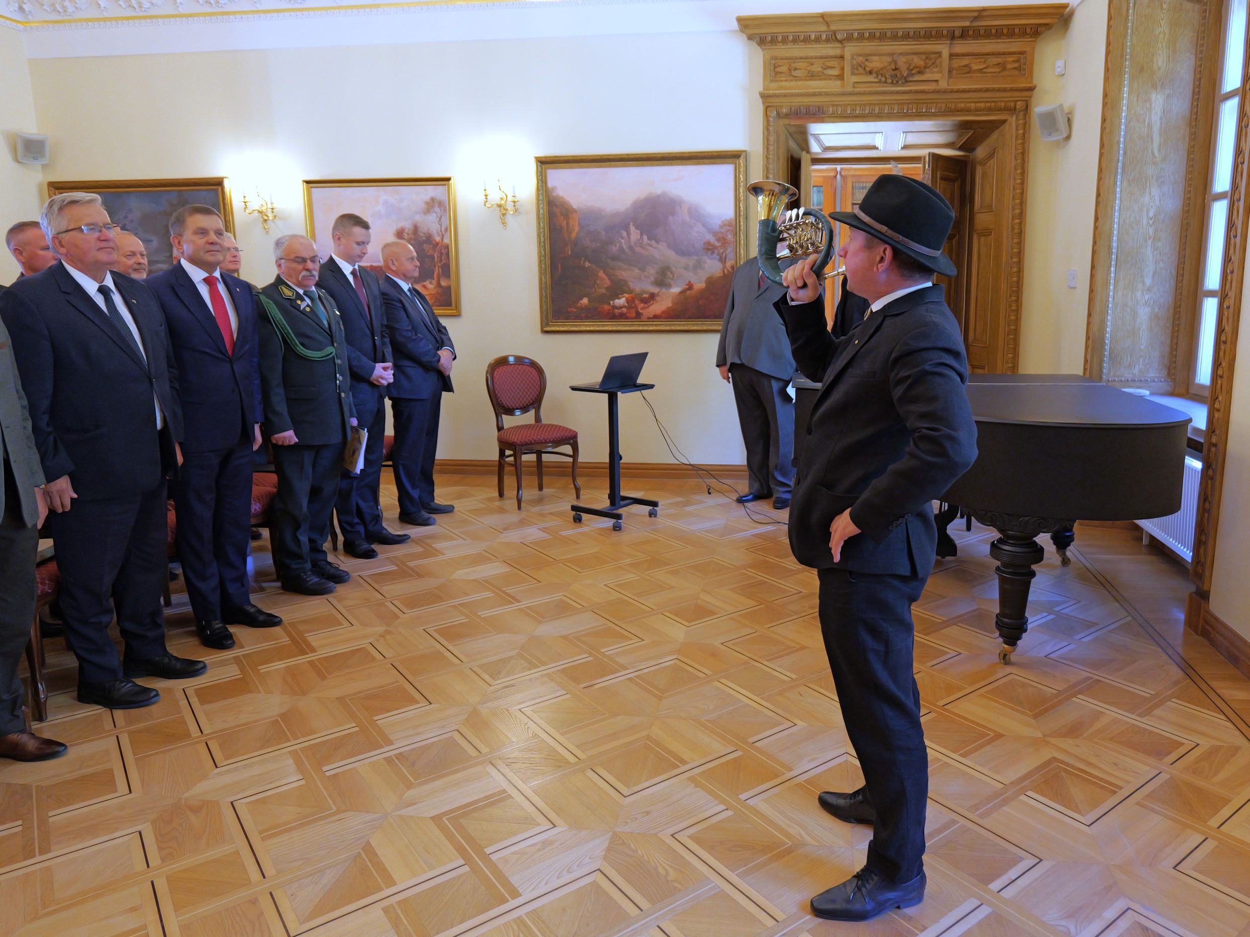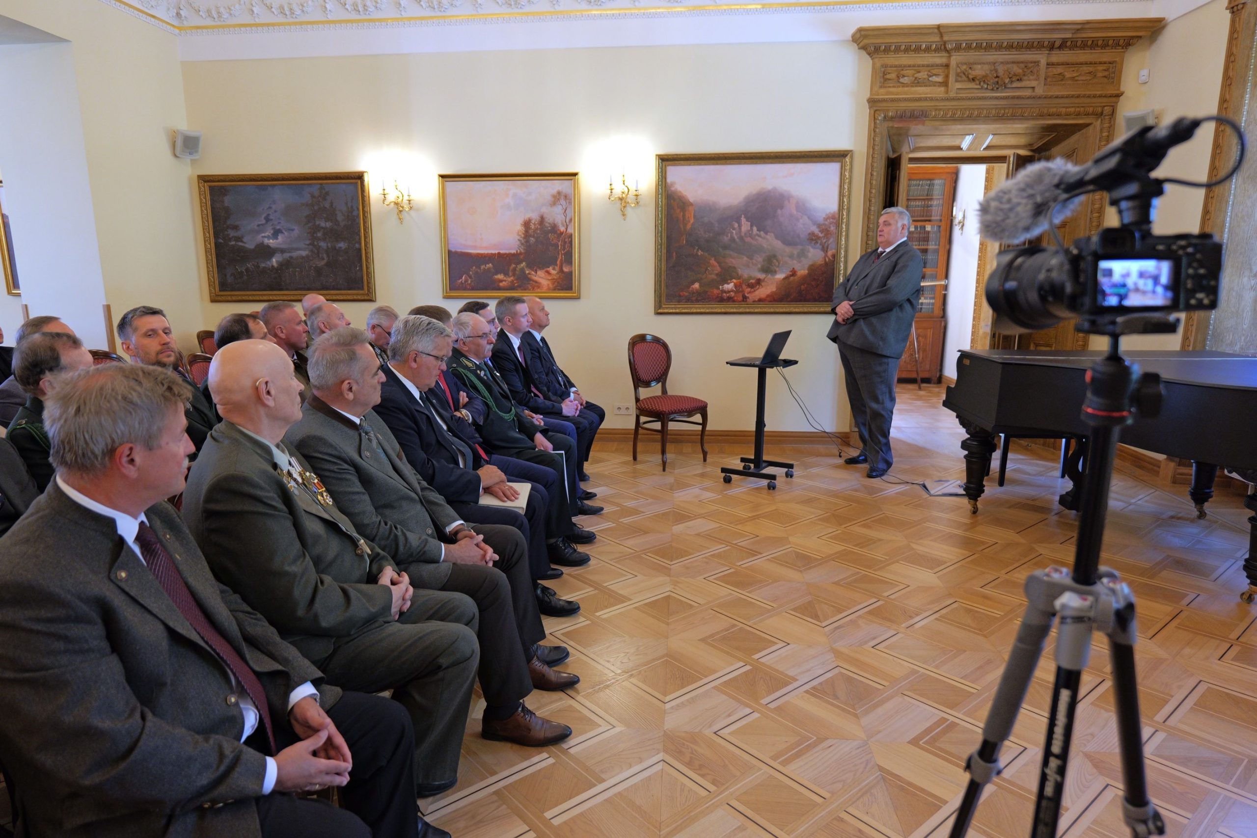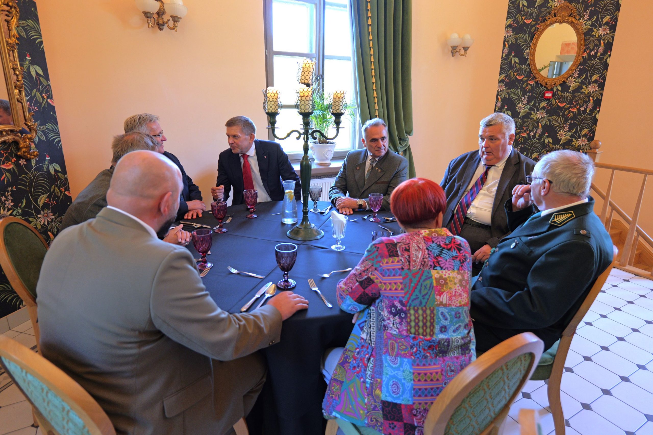 Otwarcie wystawy poprzedziło spotkanie z władzami rejonu, przygotowane przez Samorząd Rejonu Solecznickiego, w siedzibie merostwa, w Solecznikach. Spotkanie prowadził Mer Samorządu Rejonu Solecznickiego, Zdzisław Palewicz, na którym zaprezentowano historię regionu. W spotkaniu udział wzięli ze strony polskiej: Bronisław Komorowski Prezydent RP w latach 2010 – 2015, który przyczynił się do odbudowy Pałacu Balińskich, Łowczy Krajowy Eugeniusz Grzeszczak, członek NRŁ Stefan Feder, Członek Honorowy PZŁ Jerzy Pawliszak, przedstawiciele ZO PZŁ w Gorzowie Wlkp., prezes KKiKŁ PZŁ oraz rodzina Jarosława Janickiego. Na zaproszenie Mera uczestnicy odwiedzili Gimnazjum im. Jędrzeja Śniadeckiego w Solecznikach, gdzie spotkano się z młodzieżą i dyrekcją szkoły.