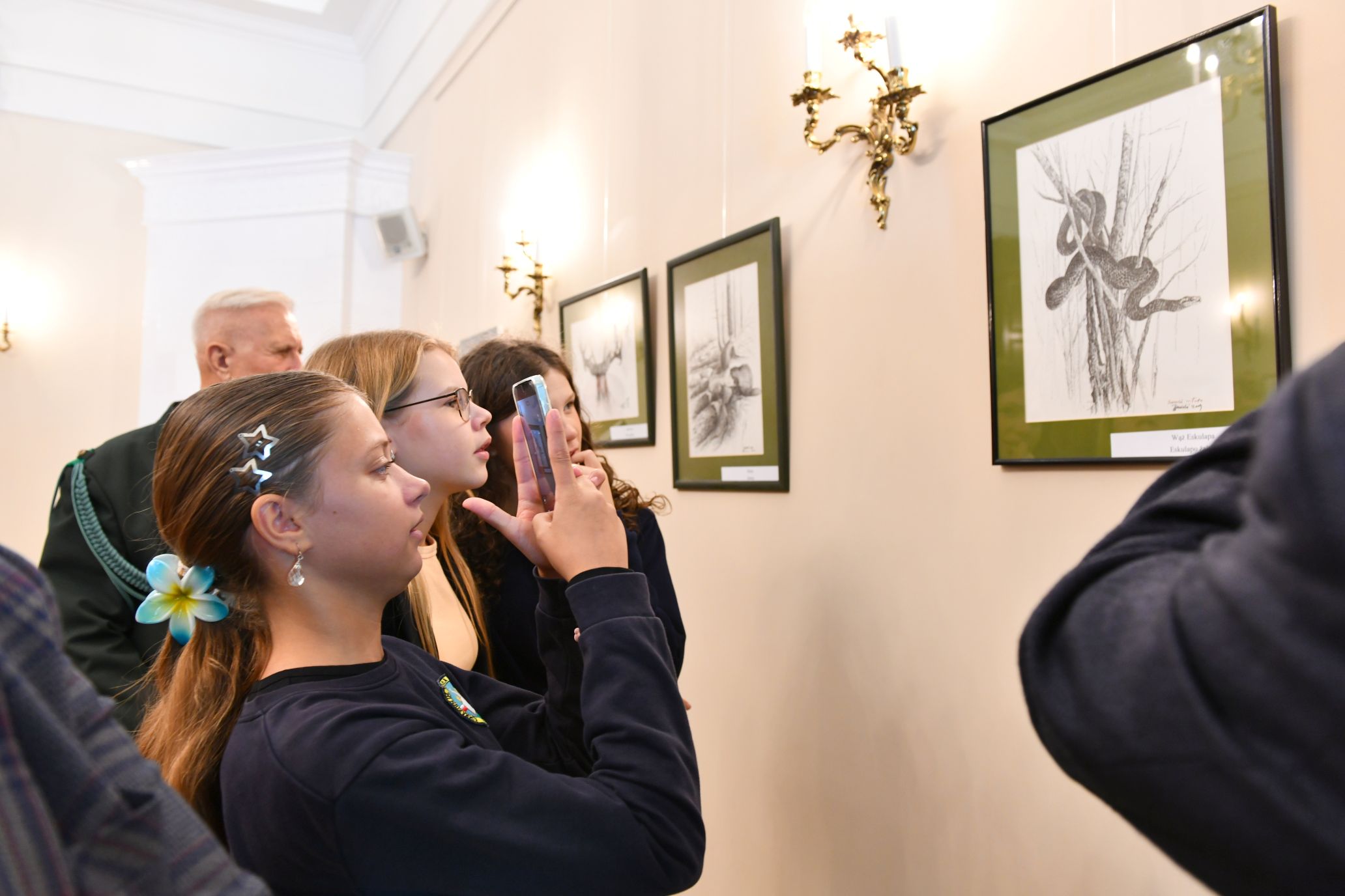 W klasycystycznym wystroju wnętrz, Pałacu Balińskich w Jaszunach, w dniu 26 września 2025 roku, otwarto wystawę rysunków Jarosława Janickiego.